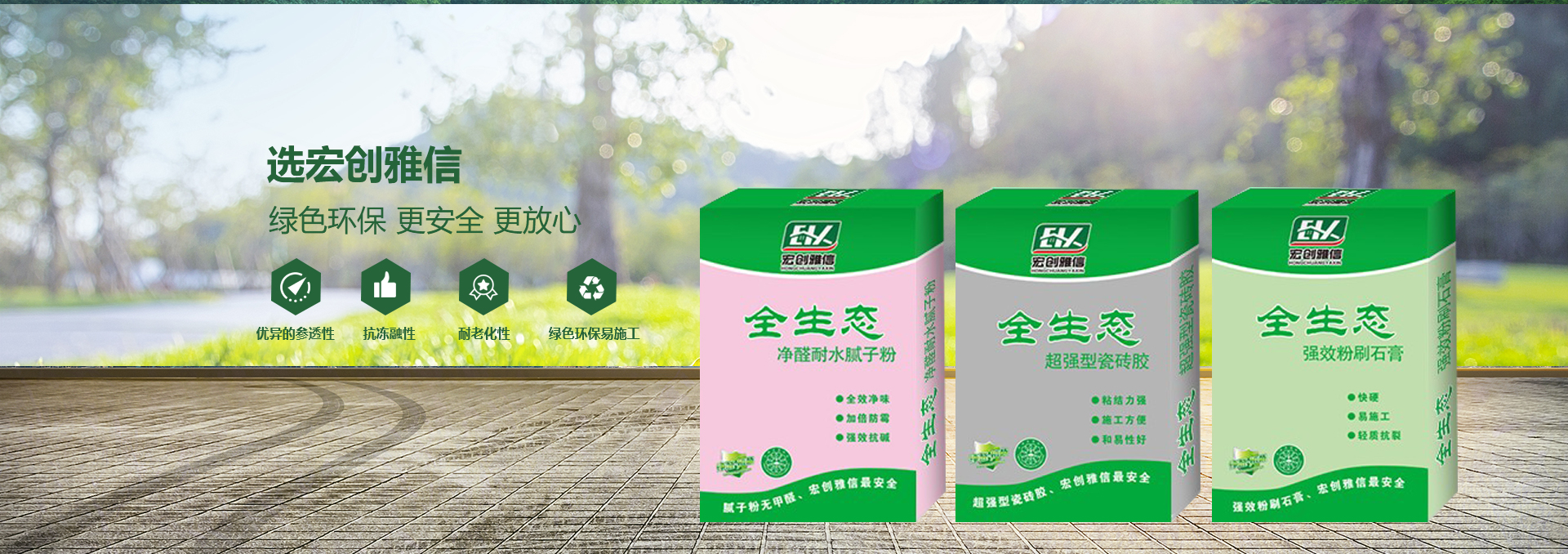 宏創(chuàng)雅信裝飾材料北京有限公司(威海分公司)是一家生產(chǎn),研發(fā),運(yùn)輸,施工綜合性股份制企業(yè),主要產(chǎn)品:快粘粉、嵌縫石膏、內(nèi)外墻耐水膩?zhàn)臃?、?nèi)墻超細(xì)膩?zhàn)臃?、高?qiáng)石膏、粉刷石膏、瓷磚粘接劑、填縫劑、內(nèi)外墻防水涂料、108膠、聚合物粘接砂漿、聚合物抗裂抹面砂漿、灰鈣、重質(zhì)碳酸鈣、砌筑砂漿、膠粉聚苯顆粒、浮雕骨料、?;⒅楸厣皾{、FTC相變節(jié)能保溫砂漿、SF增水保溫砂漿、等產(chǎn)品。